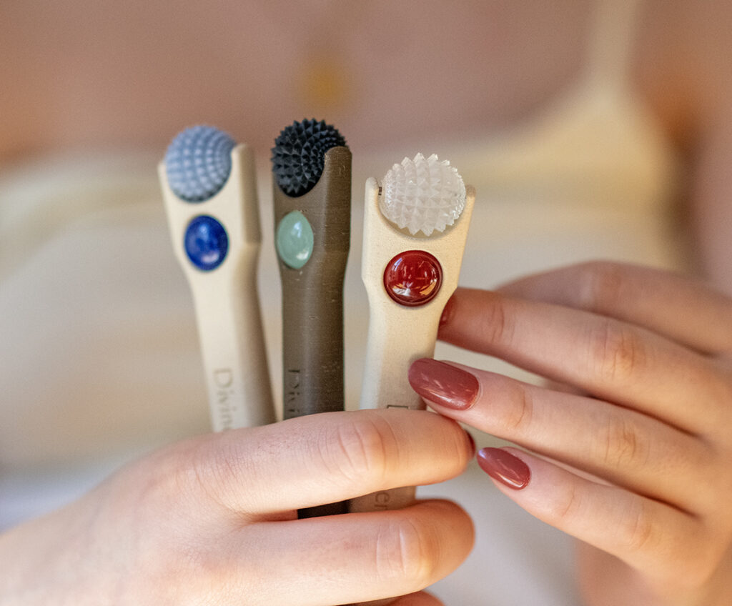 J’utilise des outils bien-être dans le cadre de mon activité : rollers visage, rollers corps, boule de massage pour les mains…Cela fait quelques années que je réfléchis à la façon de pouvoir créer mes propres outils ne trouvant plus une qualité optimale.